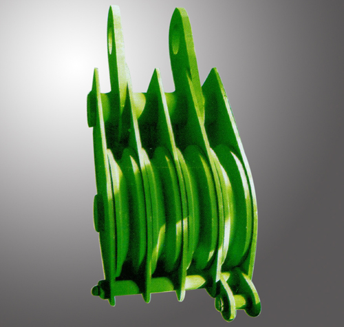 特點:自重輕,輪子耐磨性好,對鋼絲繩、繩索不損傷。形式有鉤式、環式、單開門、雙開門。